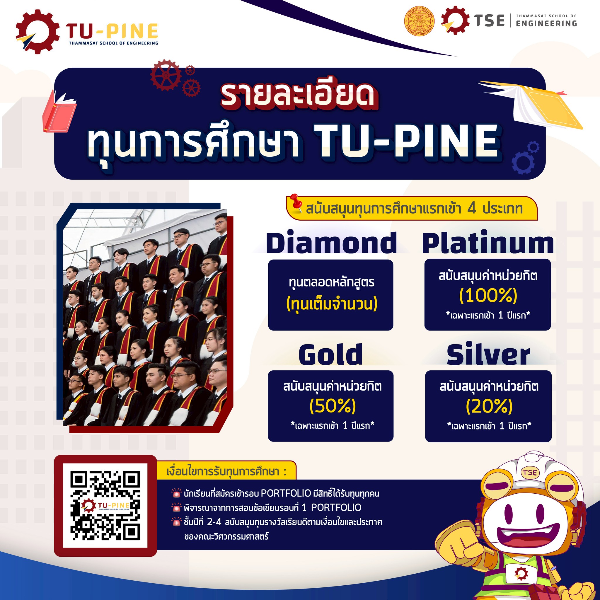 สมัครเข้าศึกษา หลักสูตร TU-PINE (สาขา EBM, iPEN, Soft-EN และ AUTO) เปิดรับสมัครรอบที่ 1 Portfolio วันที่ 15 ต.ค. - 17 พ.ย. 68 สามารถขอ